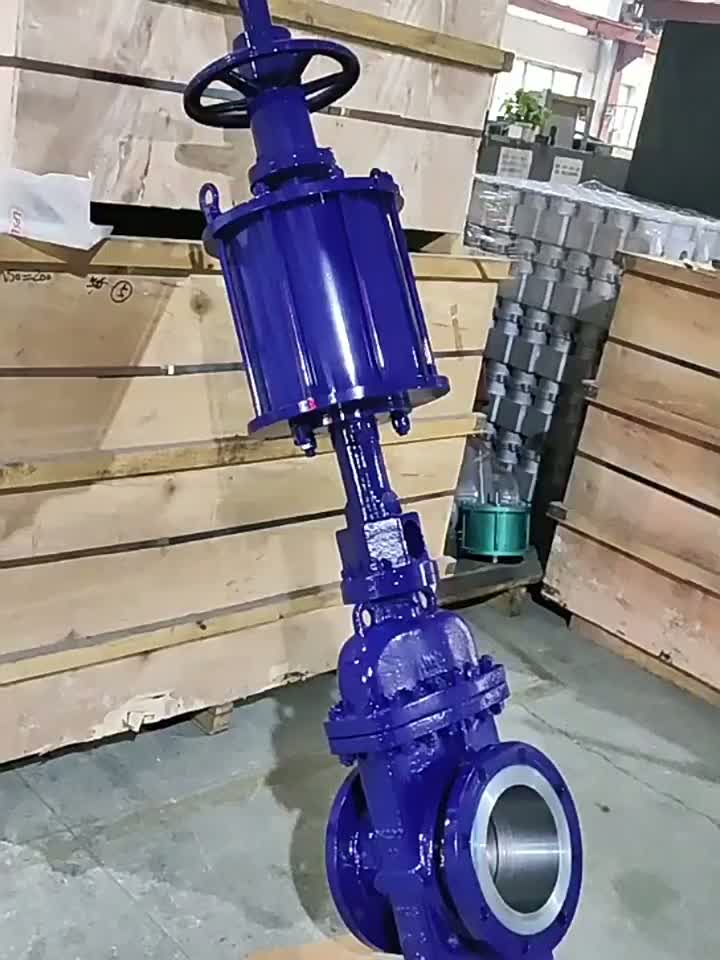 Появление Он имеет высокую вертикальную структуру с глубокой - синей отделкой, источая надежный и профессиональный вид. Корпус клапана, изготовленный из нержавеющей стали или сплавных материалов, демонстрирует долговечность. В верхней части находится пневматический привод с маховиком, объединяющим автоматизированное и ручное удобство работы. Плоская - конструкция пластины сердечника клапана проста, но функциональная, обеспечивая плавную интеграцию в трубопроводные системы.