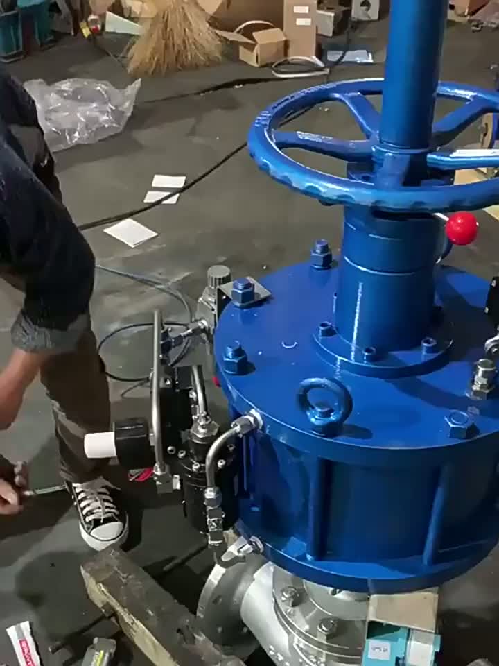 Визуально он имеет компактную, вертикальную структуру. Тело металлического клапана в сочетании с синим приводом и черным блоком управления, представляет профессиональный, долговечный вид. Чистая маркировка и интегрированные давления повышают удобство использования, в то время как подключения фланца обеспечивают легкую интеграцию трубопровода.